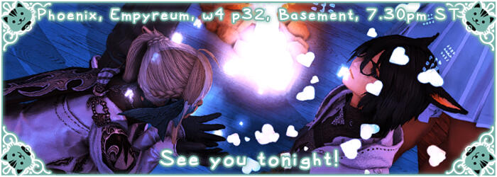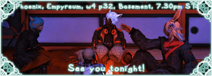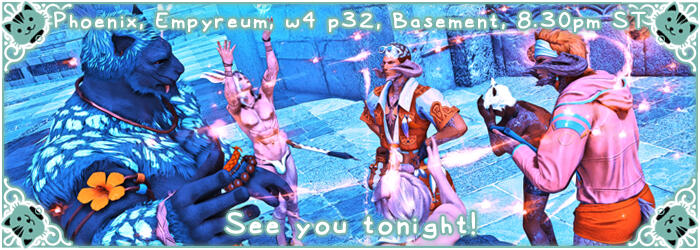 We are a NSFW pop-up venue on Phoenix of Light DC FFXIV.We aim to open every other Wednesday, but sometimes you may see us two weeks in a row or on weekends.